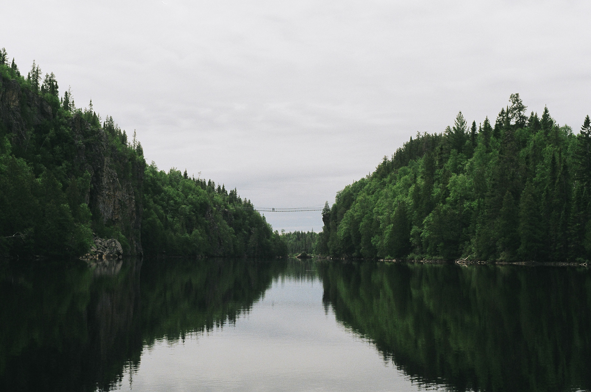 Arrivés au bout du lac Lahaie 1h30 plus tard, nous avons fait la randonnée La Traverse, une petite boucle de 3 km avec une impressionnante passerelle suspendue pour traverser le lac.