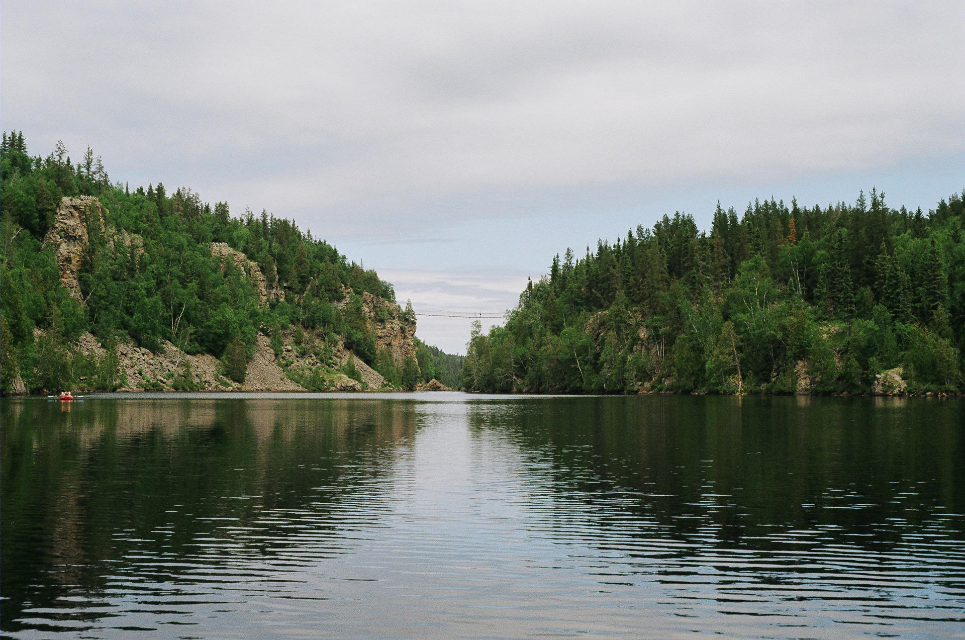 Départ au lac Sault, puis après 1h de canot, on emprunte le Partage des eaux, un sentier d’1 km permettant de rejoindre le lac Lahaie.