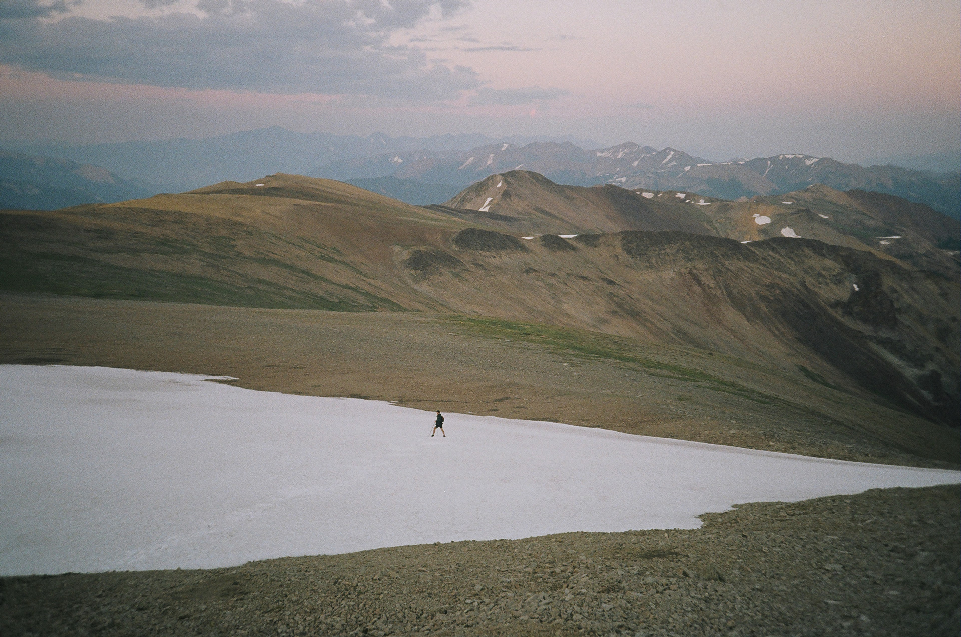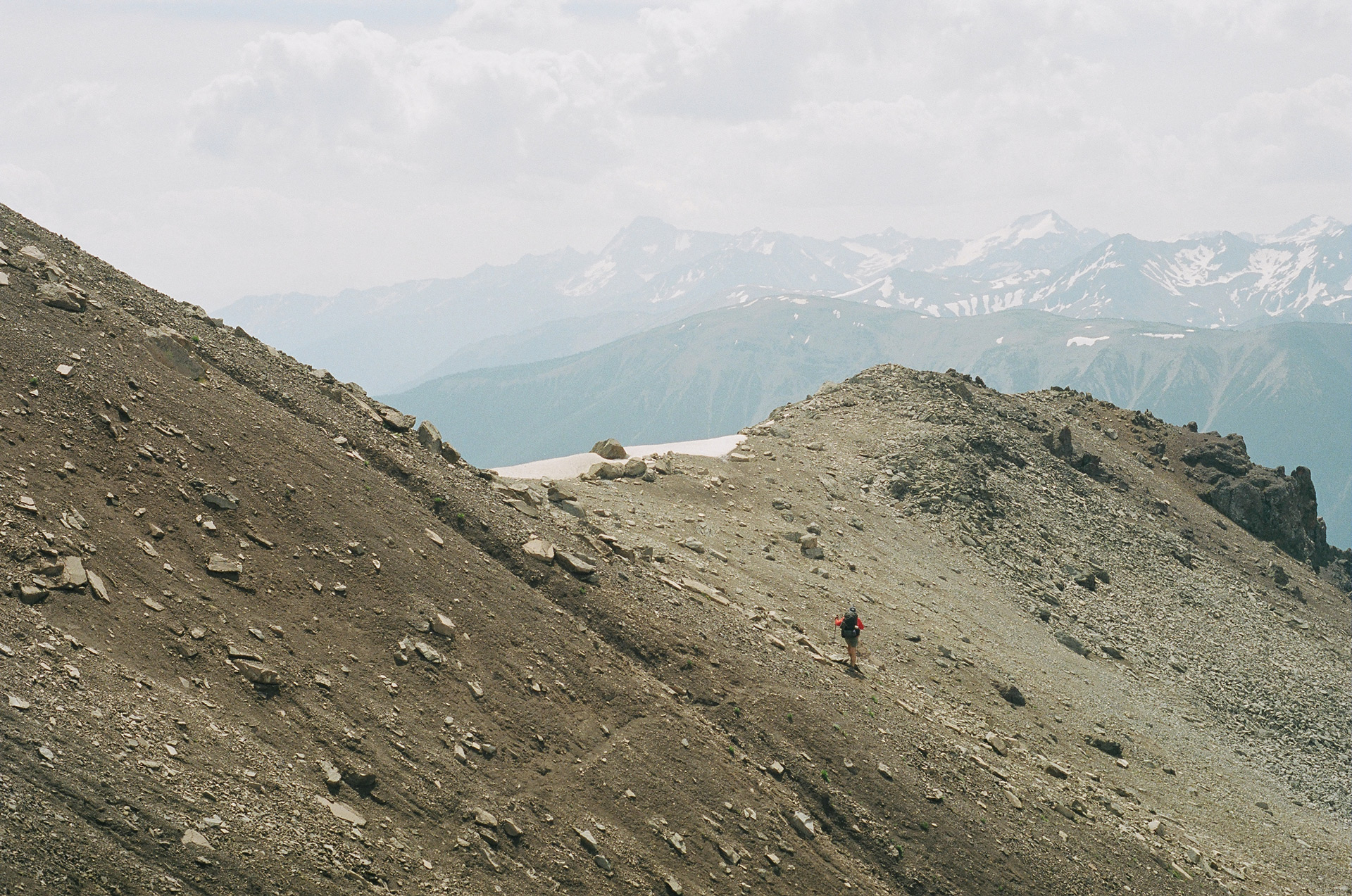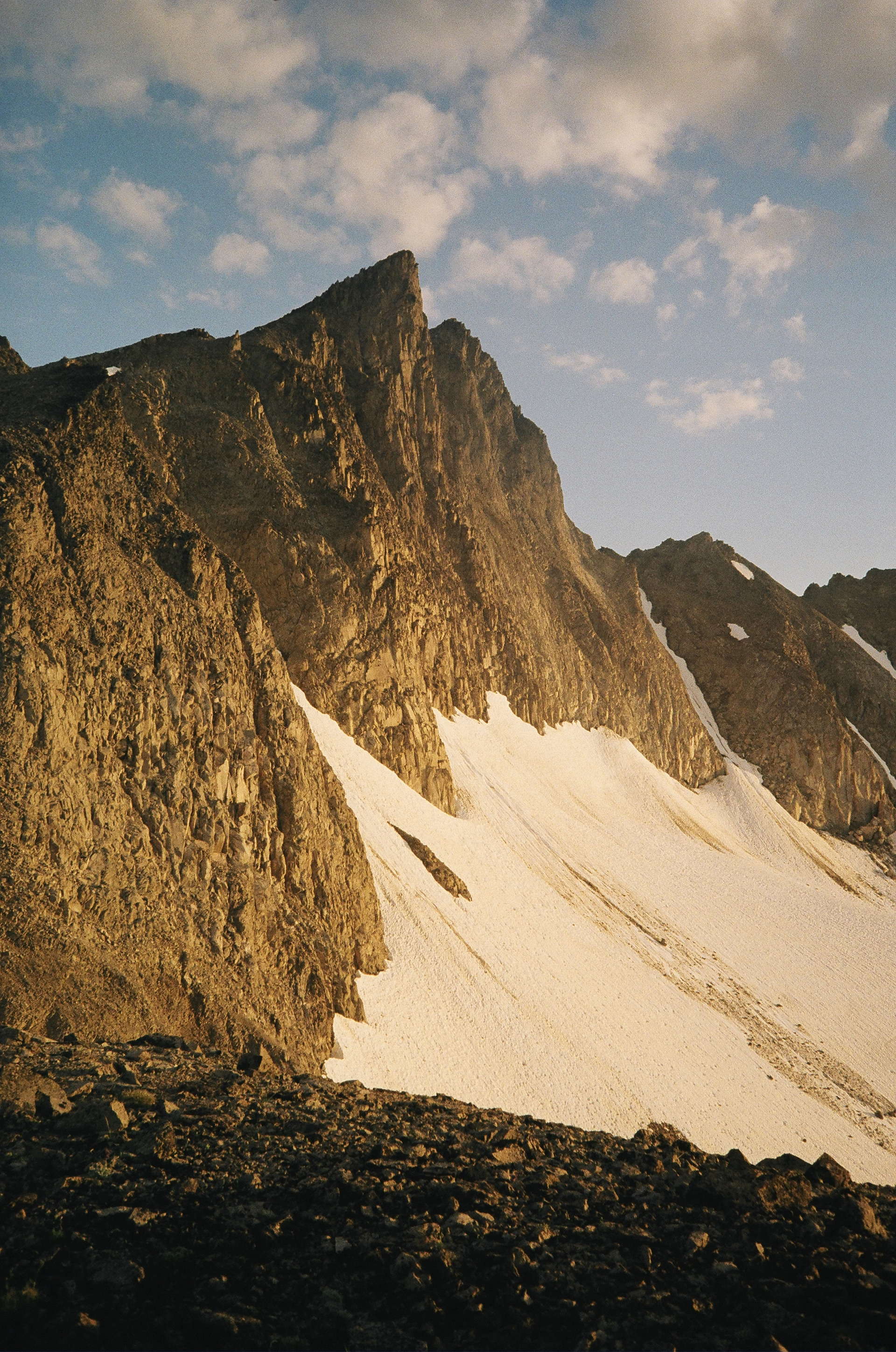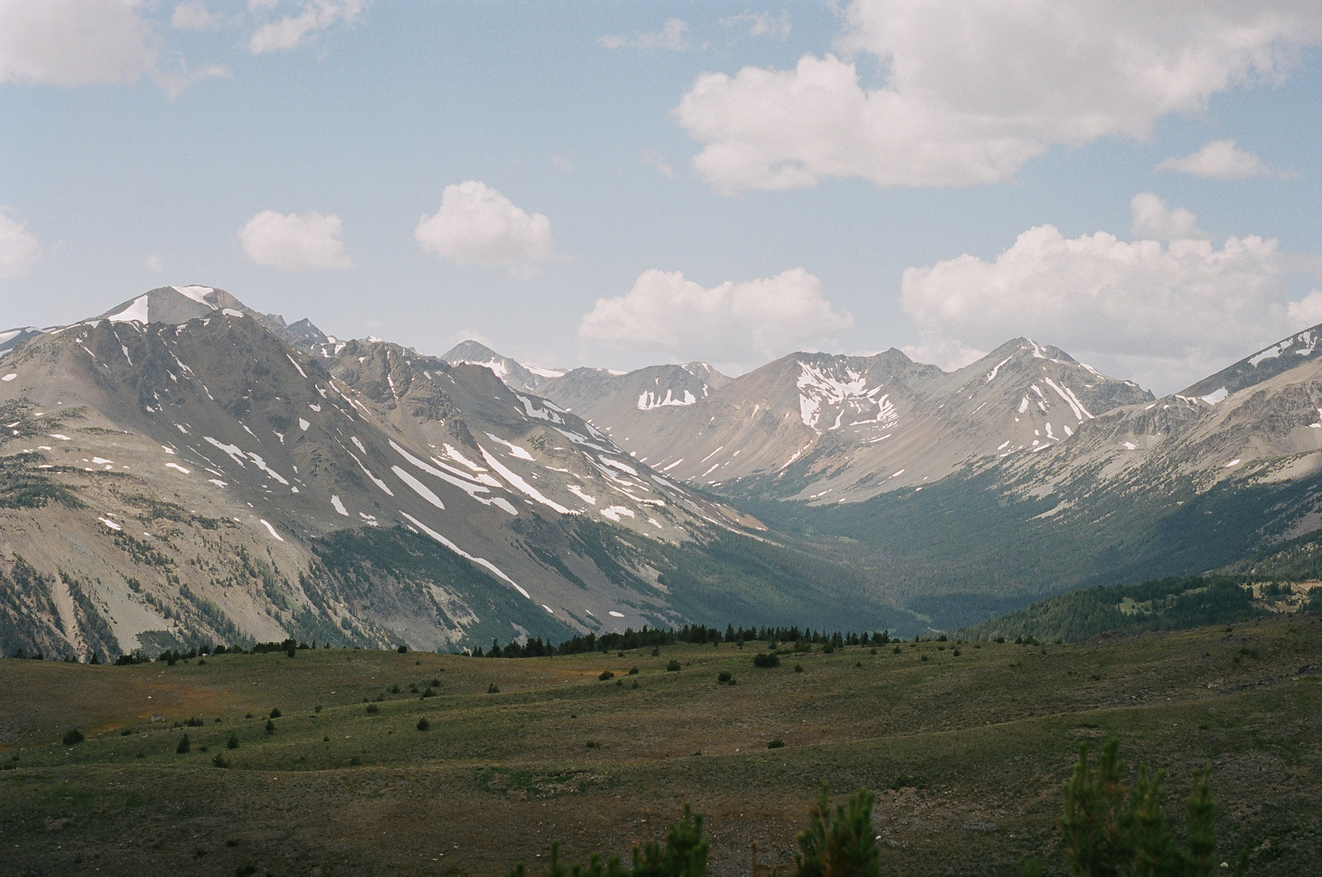 Exténué, on se jette dans le lac. 10s plus tard, on resurgit hors de cette eau si froide. Un peu traumatisé par les efforts fournis lors de cette journée de seulement 8km, mais heureux d’être ici, perdu dans ces montagnes aux panoramas infinis. On monte le campement et après une petite sieste bien méritée et le diner, on prend le sentier qui nous amène au Mont Sheba (2550+ m) point culminant des South Chilcotin. La montée est difficile, escaladant entre les roches et la neige. On est bien content d’avoir laissé nos gros sacs à dos au campement. Finalement, on arrive à se poser sur un des sommets, offrant une vue spectaculaire sur les montagnes, avec un soleil couchant magnifique. À couper le souffle. Les montagnes s’étendent sur des kilomètres à la ronde. On se sent vraiment loin de notre vie de tous les jours. Complètement déconnecté, dans ce silence difficile à trouver ailleurs.