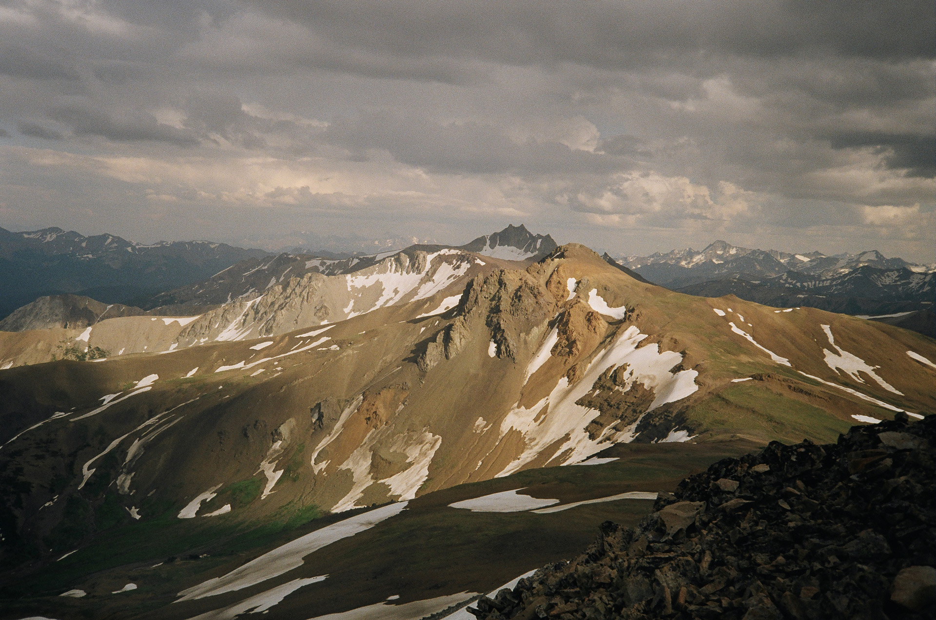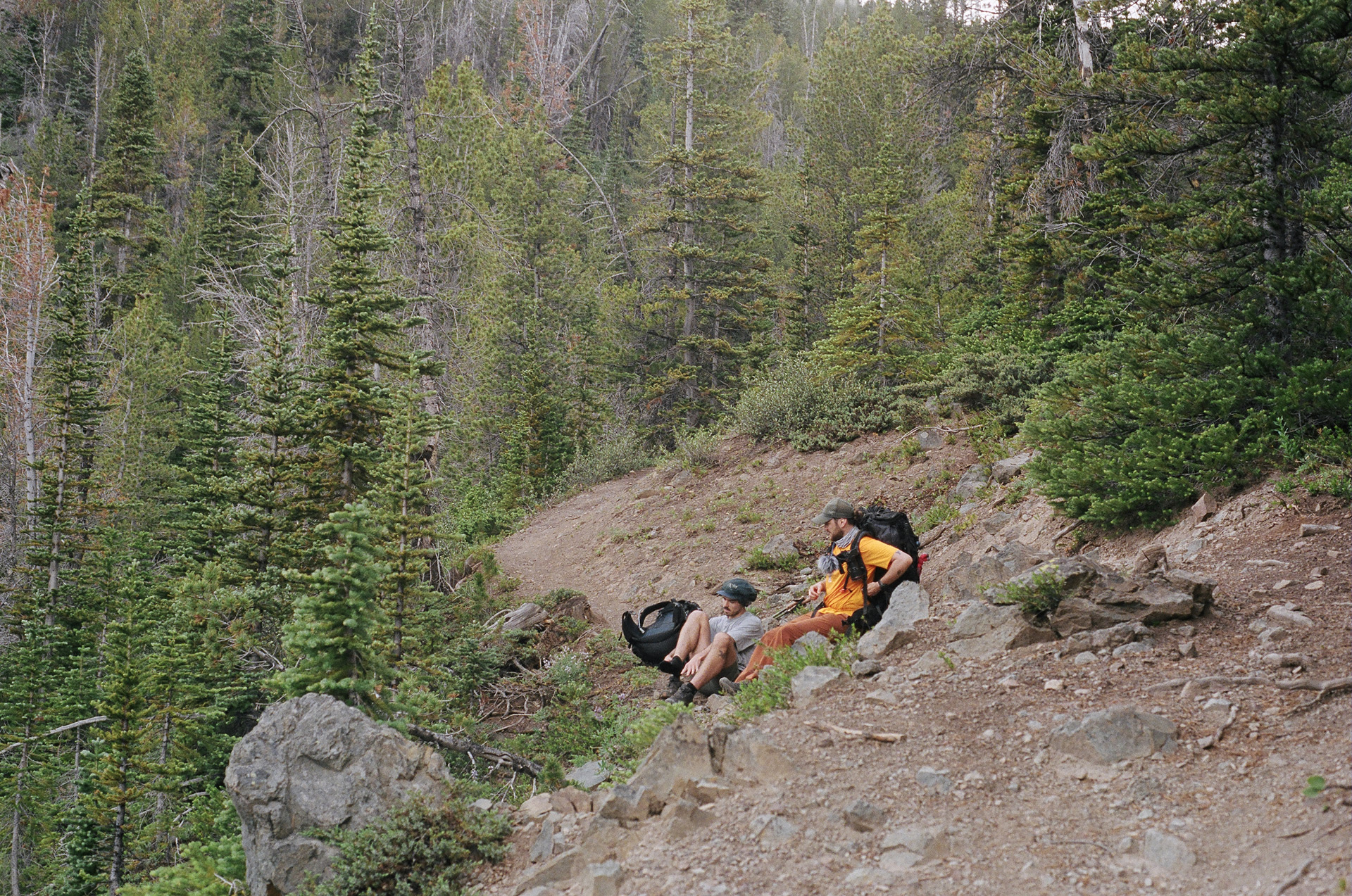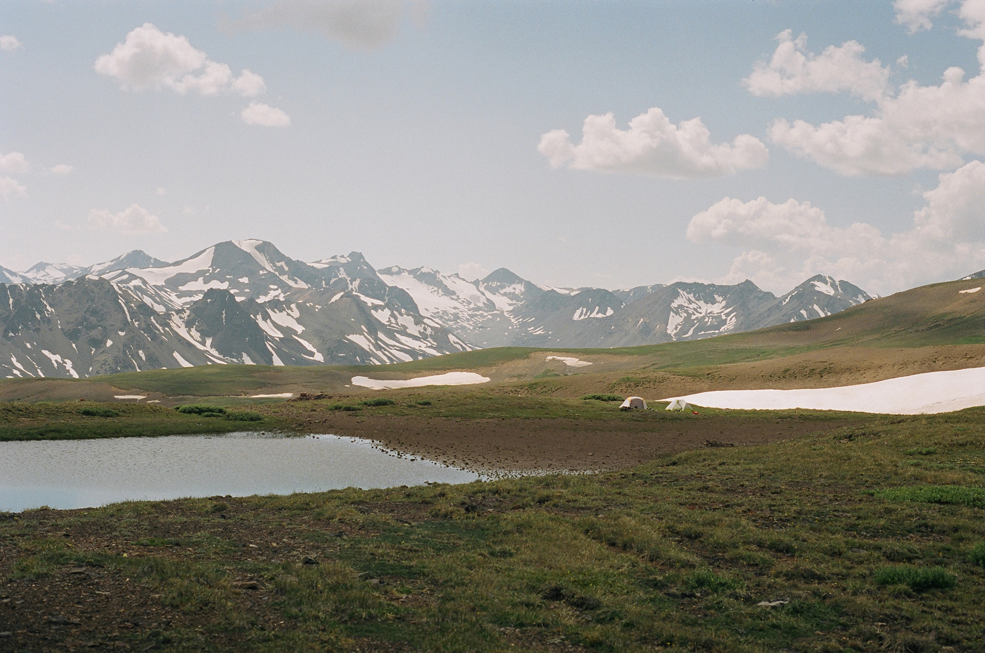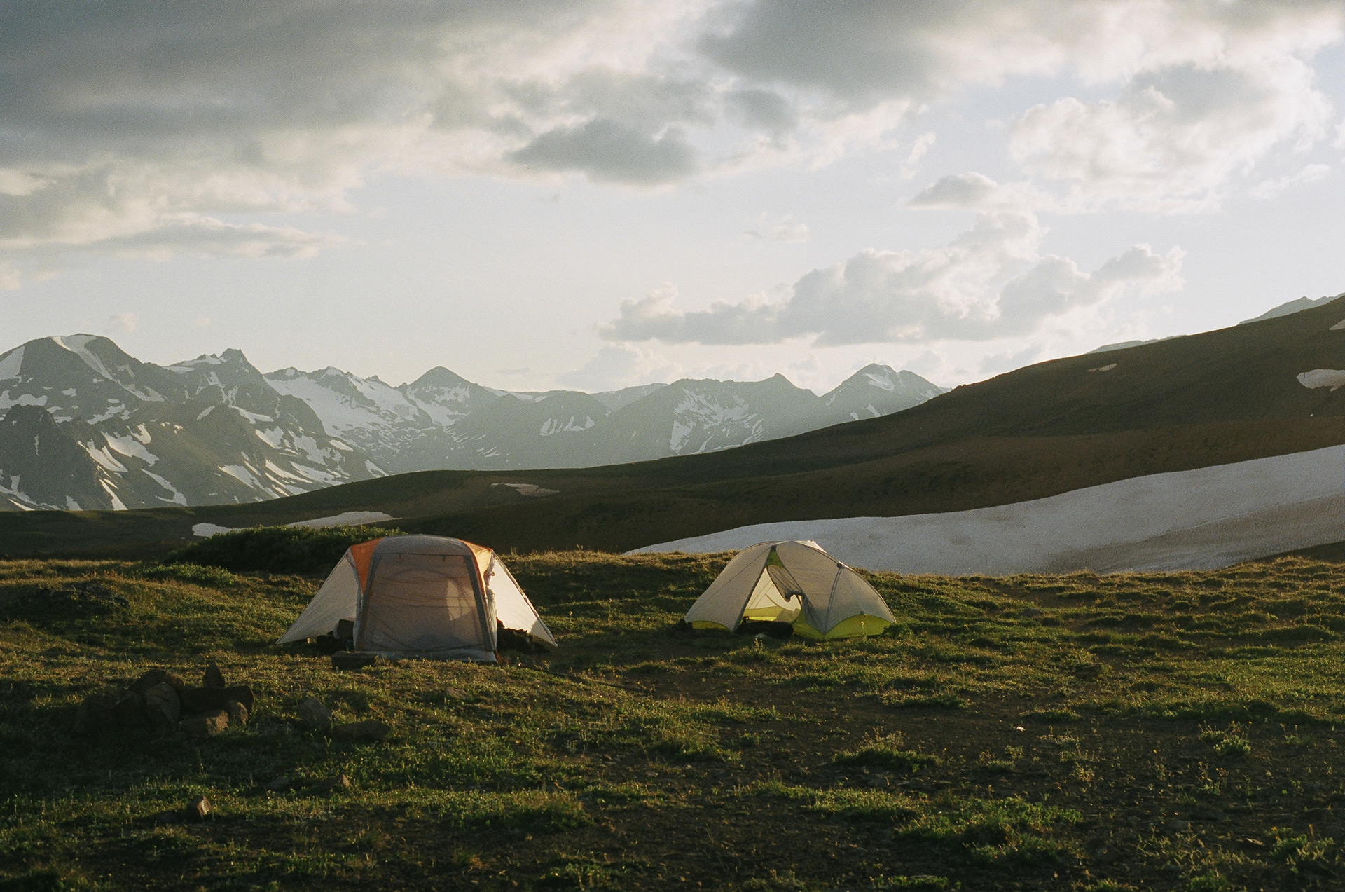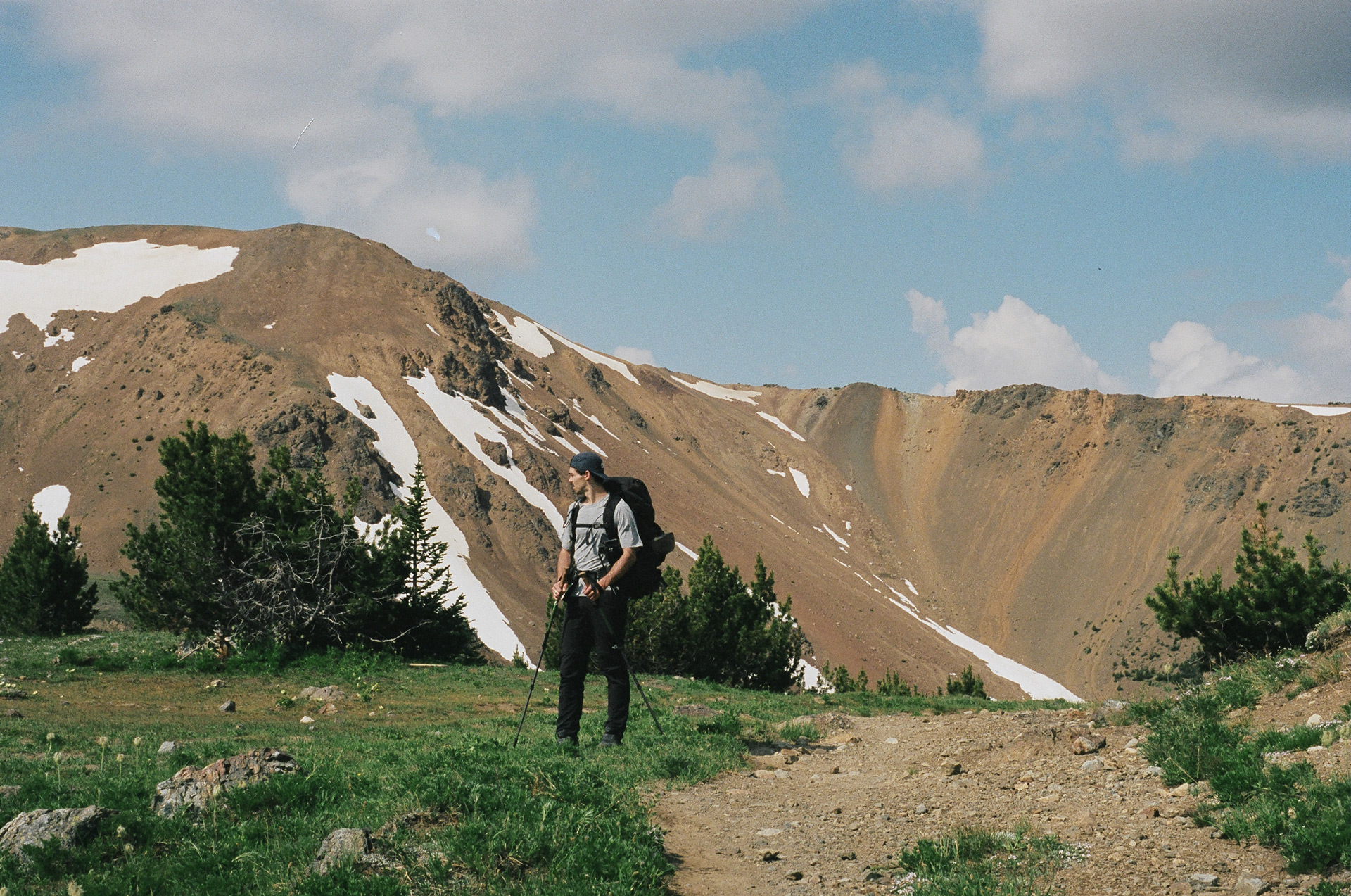 Exténué, on se jette dans le lac. 10s plus tard, on resurgit hors de cette eau si froide. Un peu traumatisé par les efforts fournis lors de cette journée de seulement 8km, mais heureux d’être ici, perdu dans ces montagnes aux panoramas infinis. On monte le campement et après une petite sieste bien méritée et le diner, on prend le sentier qui nous amène au Mont Sheba (2550+ m) point culminant des South Chilcotin. La montée est difficile, escaladant entre les roches et la neige. On est bien content d’avoir laissé nos gros sacs à dos au campement. Finalement, on arrive à se poser sur un des sommets, offrant une vue spectaculaire sur les montagnes, avec un soleil couchant magnifique. À couper le souffle. Les montagnes s’étendent sur des kilomètres à la ronde. On se sent vraiment loin de notre vie de tous les jours. Complètement déconnecté, dans ce silence difficile à trouver ailleurs.