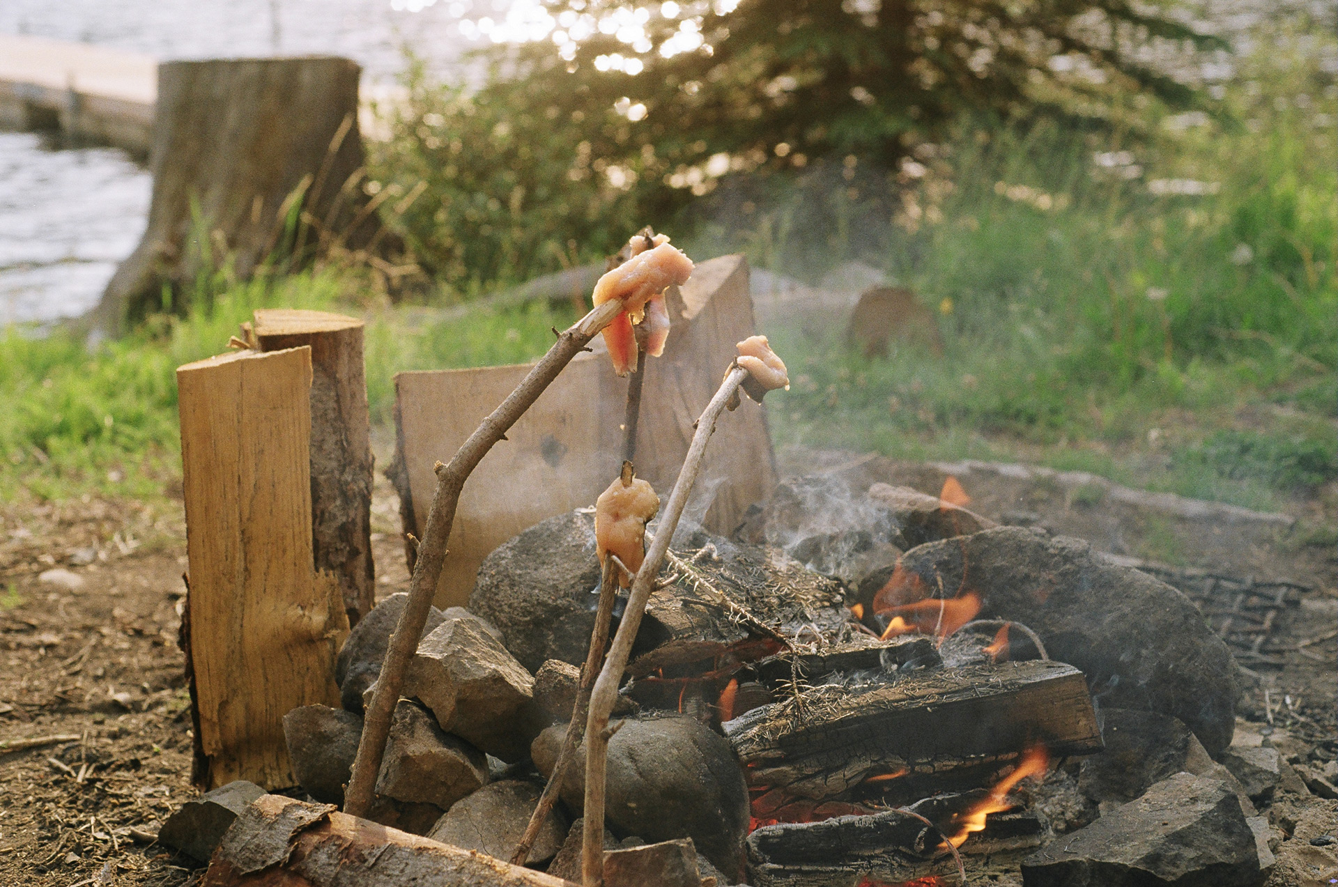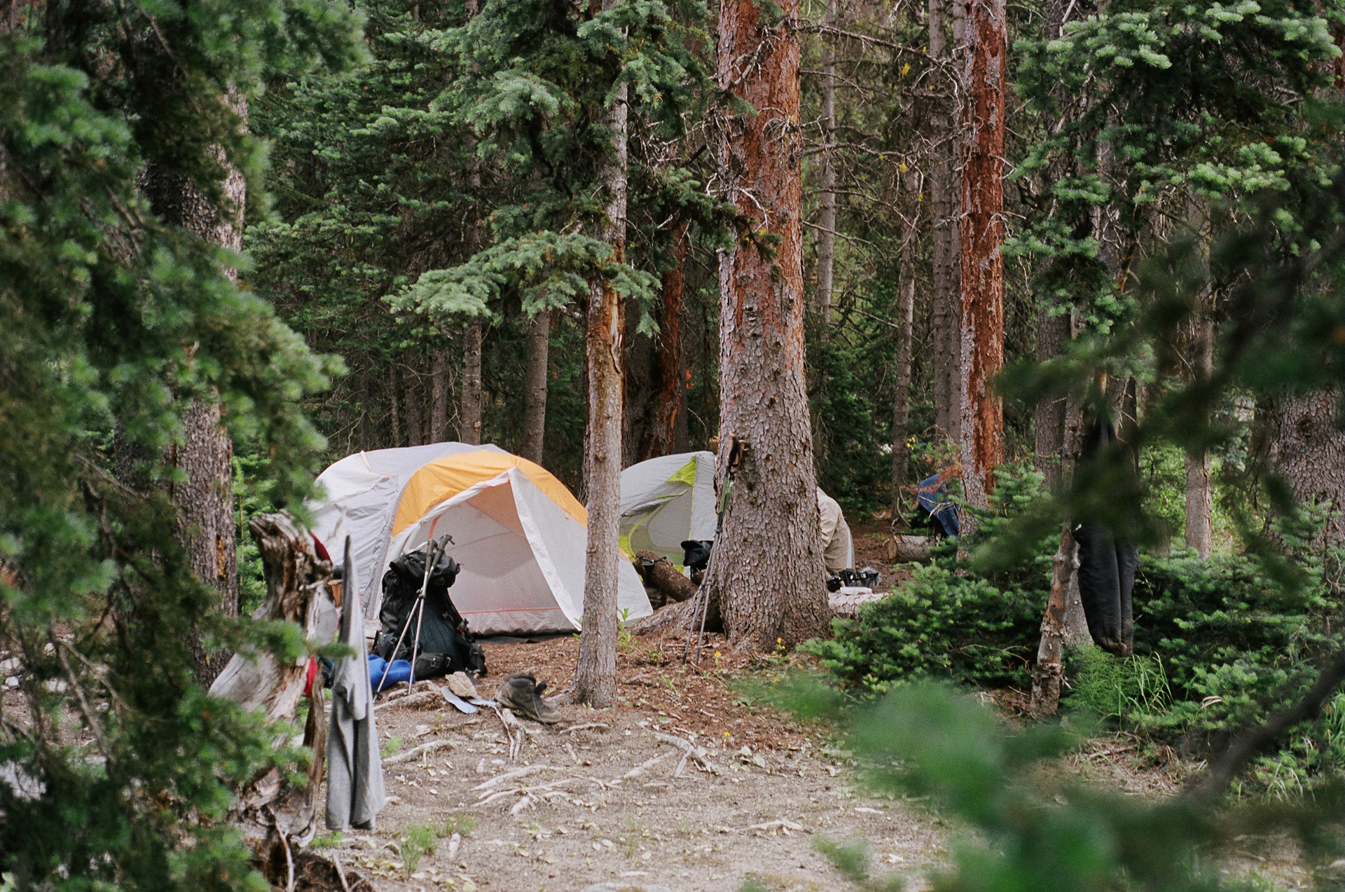 Je rampe hors de ma tente pour prendre un petit déjeuner. Au programme de la journée: 15km pour rejoindre le lac Spruce. On enchaîne les montagnes en marchant sur des crêtes offrant de superbes points de vues. On profite de nos derniers instants au-dessus de la forêt. Il n’y a pas de sentier. On s’aide de la carte et du GPS qui nous montre notre position sur Trail Forks. On dévale un dernier chemin caillouteux avant de retrouver la forêt. Le sentier Open Hearth traverse une forêt remplie de fleurs sauvages et nous amène au lac. On rejoint enfin le lac Spruce, alors que le tonnerre se fait entendre. Le campement est assez grand et bien aménagé. On est surpris de ne voir personne d’autre. Alexis décide de sortir la canne à pêche, et au bout de seulement 30min, 4 truites arc-en-ciel ont déjà mordu. On est très excité, à l’idée de manger du poisson frais. Le repas lyophilisé attendra. Après avoir nettoyé et vidé les truites, on les fait cuire au feu. Gros festin.