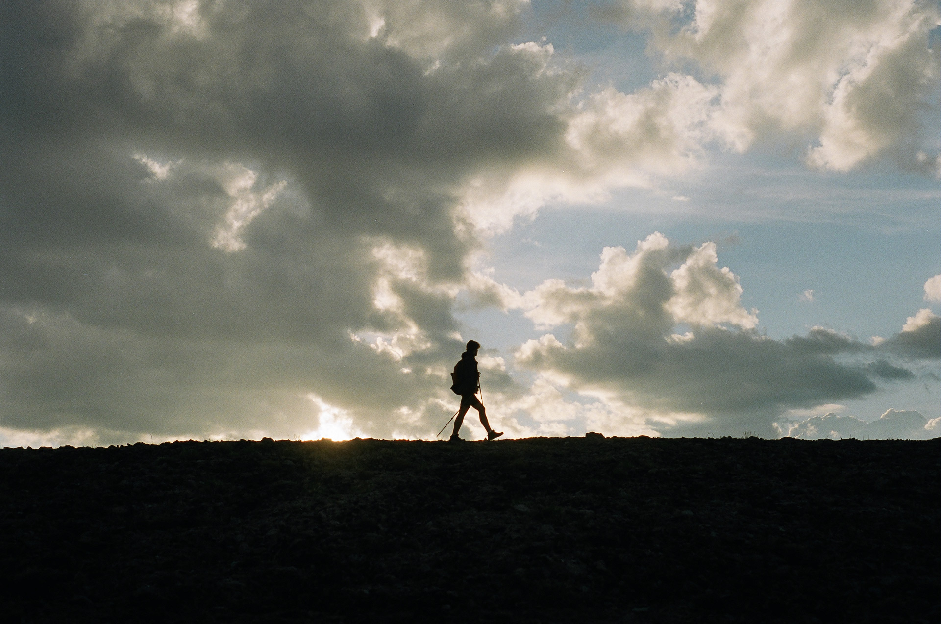 Se trouver à des kilomètres de la moindre trace de civilisation est assez stressant par moment. Avant de dormir, je glisse ma tête hors de mon sac de couchage, pour profiter du coucher de soleil.