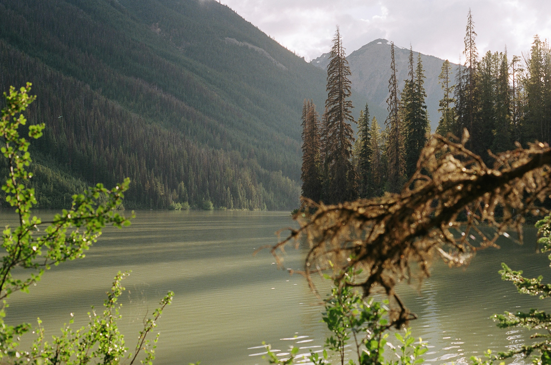 Juste après Pemberton, nous avons pris la Hurley Forest Service Road et nous nous sommes lancés dans 50 km de route de gravier cahoteuse. Des virages en épingle à cheveux, sans glissières de sécurité et avec le lac Anderson en contrebas. On se rend compte que le parc est très difficile d’accès. Après 2h de route sur ce chemin dangereux, nous arrivons proche d’un barrage au Carpenter Lake et passons la nuit au Mission Dam Recreation site, un petit campement libre d’accès.